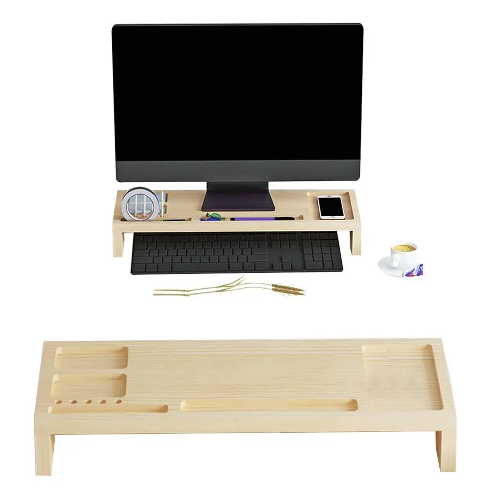 Good Price of Computer Monitor Wooden Stand Base Riser Office Desktop Storage Rack Organizer
